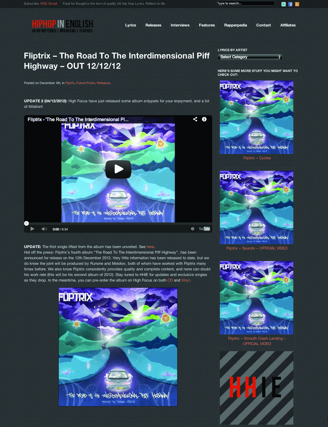 Fliptrix – The Road To The Interdimensional Piff Highway – Hip Hop Life & Times Review High Focus2013-08-02T10:23:35+00:00December 15th, 2012|Fliptrix, Press|