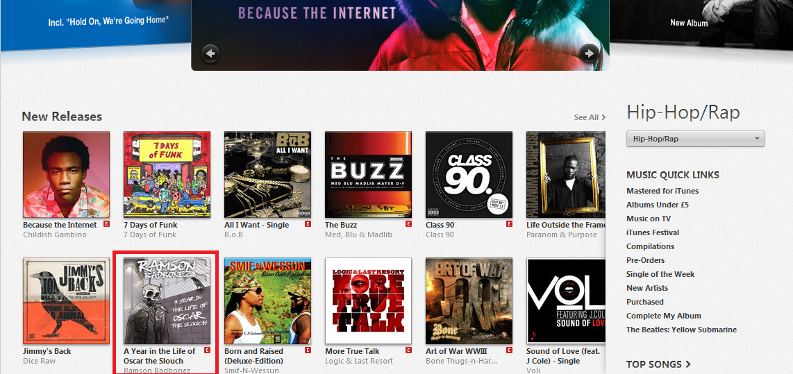 Ramson Badbonez – Featured On Amazon.com Hip-Hop Homepage High Focus2013-12-12T14:47:04+00:00December 12th, 2013|Press, Ramson Badbonez| http://www.amazon.com/Year-Life-Oscar-Slouch-Explicit/dp/B00GHS23WW/ref=sr_1_1?s=dmusic&ie=UTF8&sr=1-1&keywords=ramson+badbonez