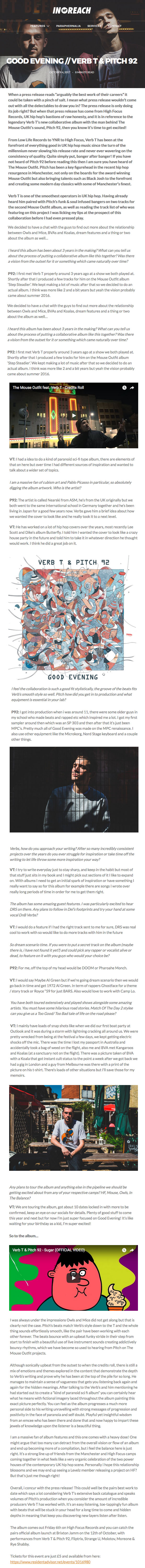 Verb T & Pitch 92 – ‘Good Evening’ – Album Review & Interview With In-Reach High Focus2017-10-05T16:13:03+00:00October 5th, 2017|Press, Verb T|