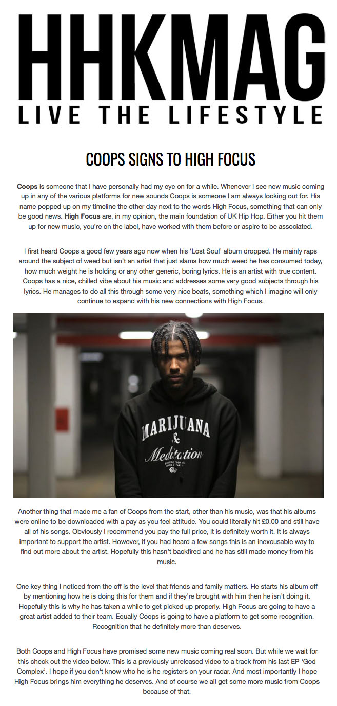 Coops – Signing To High Focus – Featured In Hip Hop Kings High Focus2017-10-09T10:19:56+00:00October 4th, 2017|Coops, Press| http://www.hhkmag.com/coops-signs-high-focus/