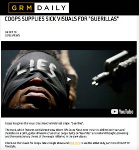 Coops – ‘Guerillas’ – GRM Daily Feature High Focus2018-10-08T10:09:16+00:00October 8th, 2018|Coops, Press| http://grmdaily.com/video/coops-guerillas