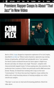 Coops – That Jazz – Video Premiere With Complex UK High Focus2018-02-02T17:00:39+00:00February 2nd, 2018|Coops, Press| http://www.complex.com/music/2018/02/premiere-coops-that-jazz-video