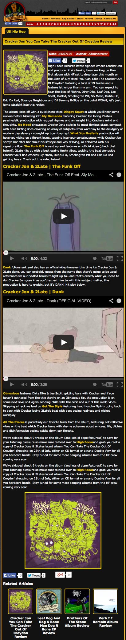 Cracker Jon & 2Late – You Can Take The Cracker Out Of Croydon – Underground HH Review High Focus2014-07-25T14:24:51+00:00July 25th, 2014|Cracker Jon & 2Late, Press| http://www.undergroundhh.com/news/full/409/Cracker-Jon-You-Can-Take-The-Cracker-Out-Of-Croydon-Review