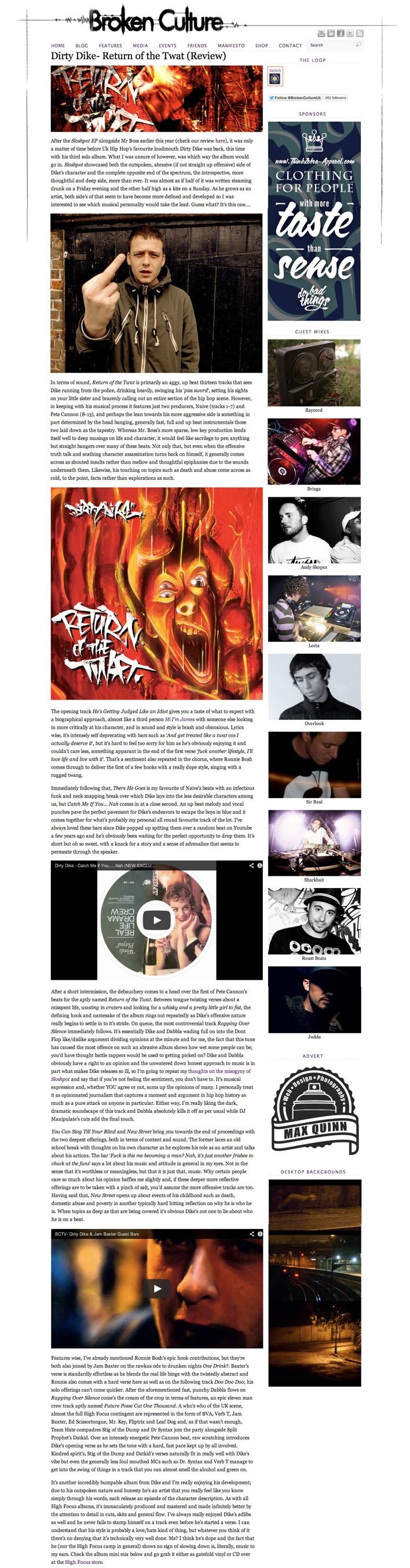 Dirty Dike – Return Of The Twat – Broken Culture Review High Focus2013-08-02T14:25:41+00:00May 15th, 2013|Dirty Dike, Press|