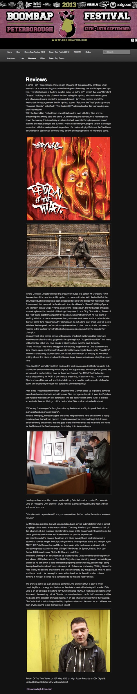 Dirty Dike – Return Of The Twat – Boombap UK Review High Focus2013-08-02T14:30:29+00:00May 14th, 2013|Dirty Dike, Press|