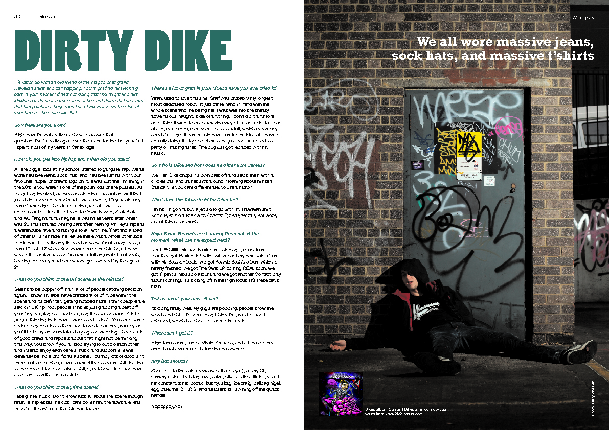 Dirty Dike – 2 Page spread in Wordplay Magazine High Focus2011-11-18T23:58:58+00:00November 18th, 2011|Dirty Dike, Press|