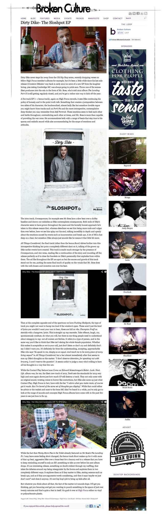 Dirty Dike – The Sloshpot Ep – Broken Culture Review High Focus2013-08-02T14:36:09+00:00January 14th, 2013|Dirty Dike, Press|