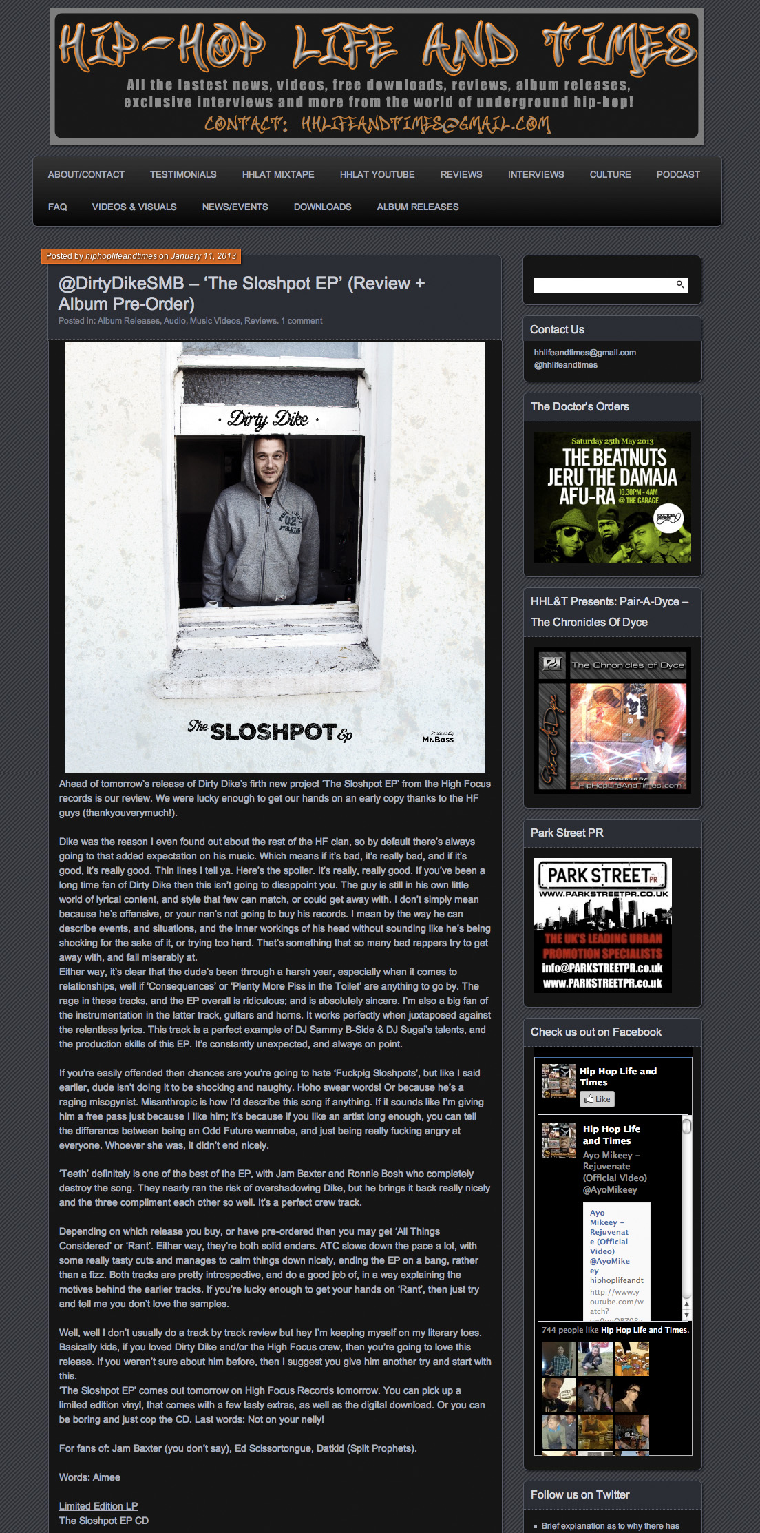 Dirty Dike – The Sloshpot Ep – Hip Hop Life & Times Review High Focus2013-08-02T11:41:31+00:00January 13th, 2013|Dirty Dike, Press|