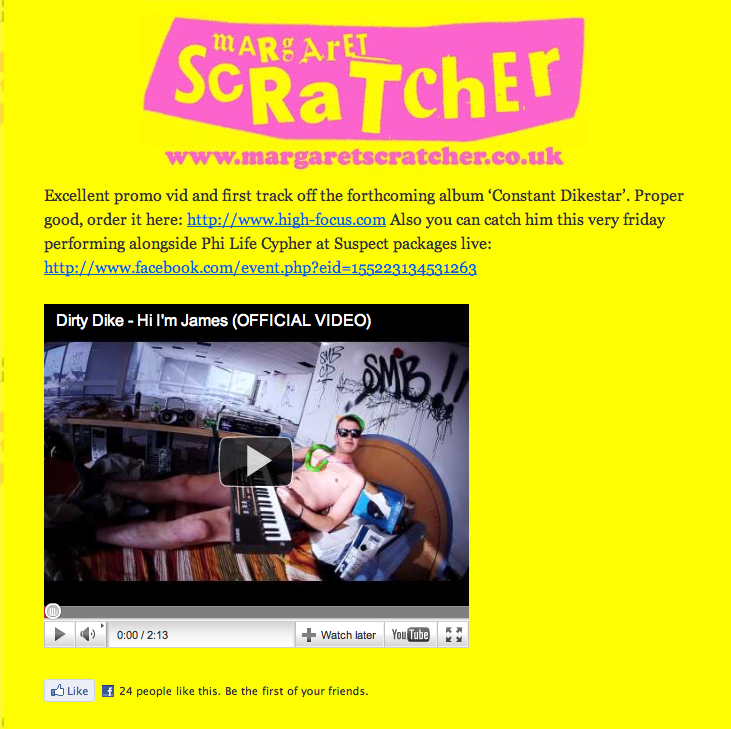 Hi I’m James on Margaret Scratcher High Focus2011-05-25T15:02:00+00:00May 25th, 2011|Dirty Dike, Press|