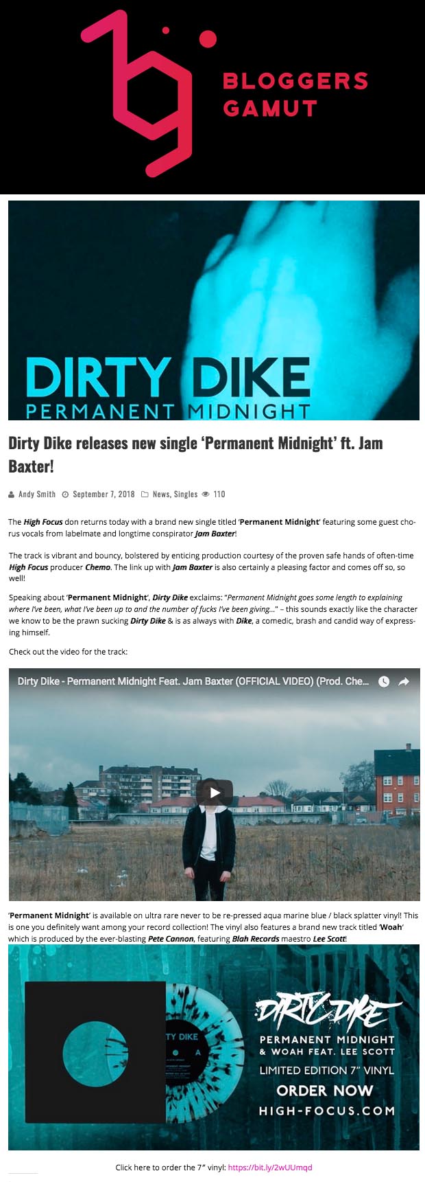 Dirty Dike – ‘Permanent Midnight’ – Bloggers Gamut Feature High Focus2018-09-11T13:16:41+00:00September 11th, 2018|Dirty Dike, Press| http://bloggersgamut.com/news/dirty-dike-permanent-midnight-ft-jam-baxter/