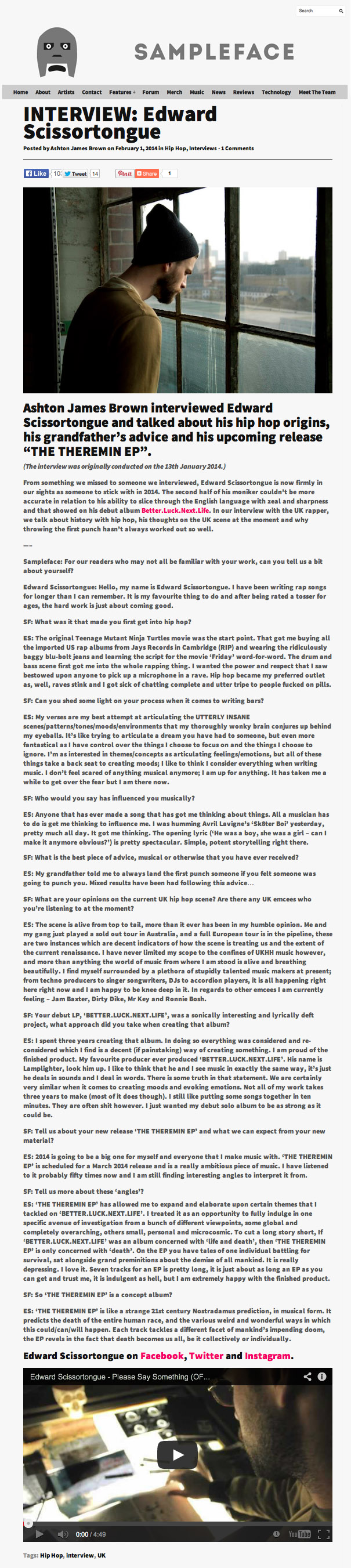 Edward Scissortongue made a special guest appearance on the Chester P & Remus Show on Itch FM last week! He talks candidly about his new […]
