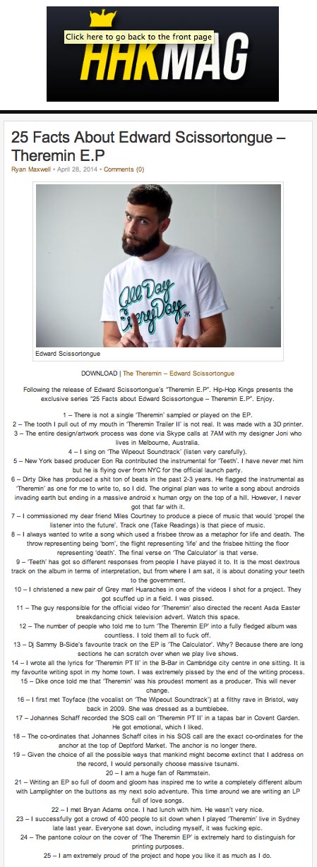 Edward Scissortongue – Hip Hop Kings 25 Theremin EP Facts High Focus2014-04-29T14:24:04+00:00April 29th, 2014|Ed Scissortongue, Press| http://www.hip-hopkings.com/2014/04/25-facts-about-edward-scissortongue-theremin-e-p/