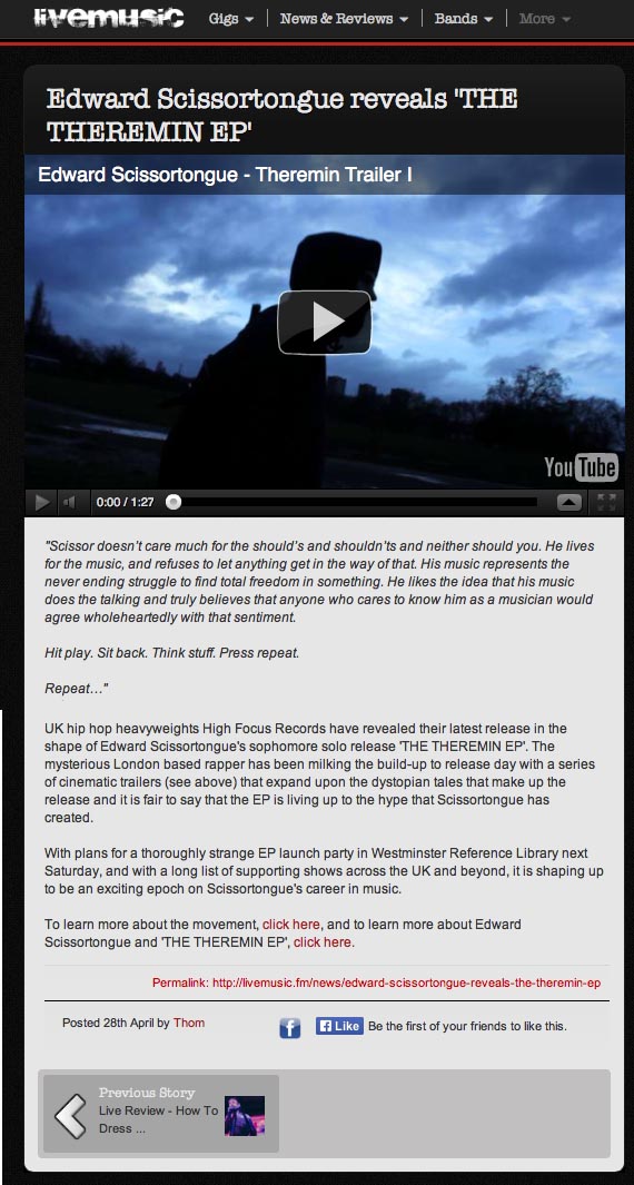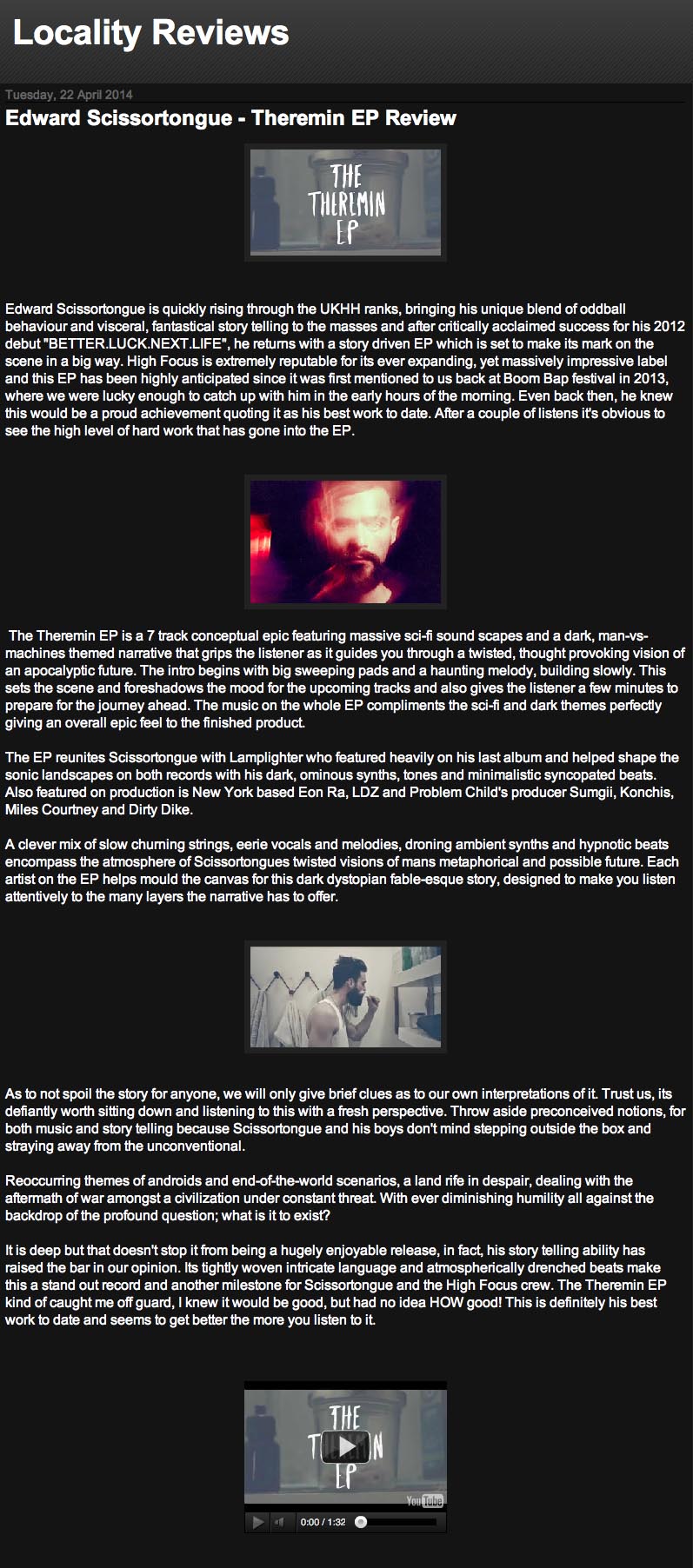 Edward Scissortongue – The Theremin EP – Locality Review High Focus2014-04-29T14:22:41+00:00April 29th, 2014|Ed Scissortongue, Press| http://locaityreviews.blogspot.co.uk/2014/04/edward-scissortongue-theremin-ep-review.html?m=1