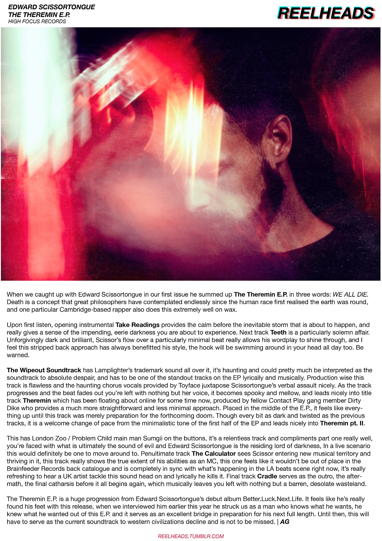 Edward Scissortongue – The Theremin EP – Reelheads Review High Focus2014-04-28T09:02:24+00:00April 28th, 2014|Ed Scissortongue, Press| http://reelheads.tumblr.com/image/83913033984