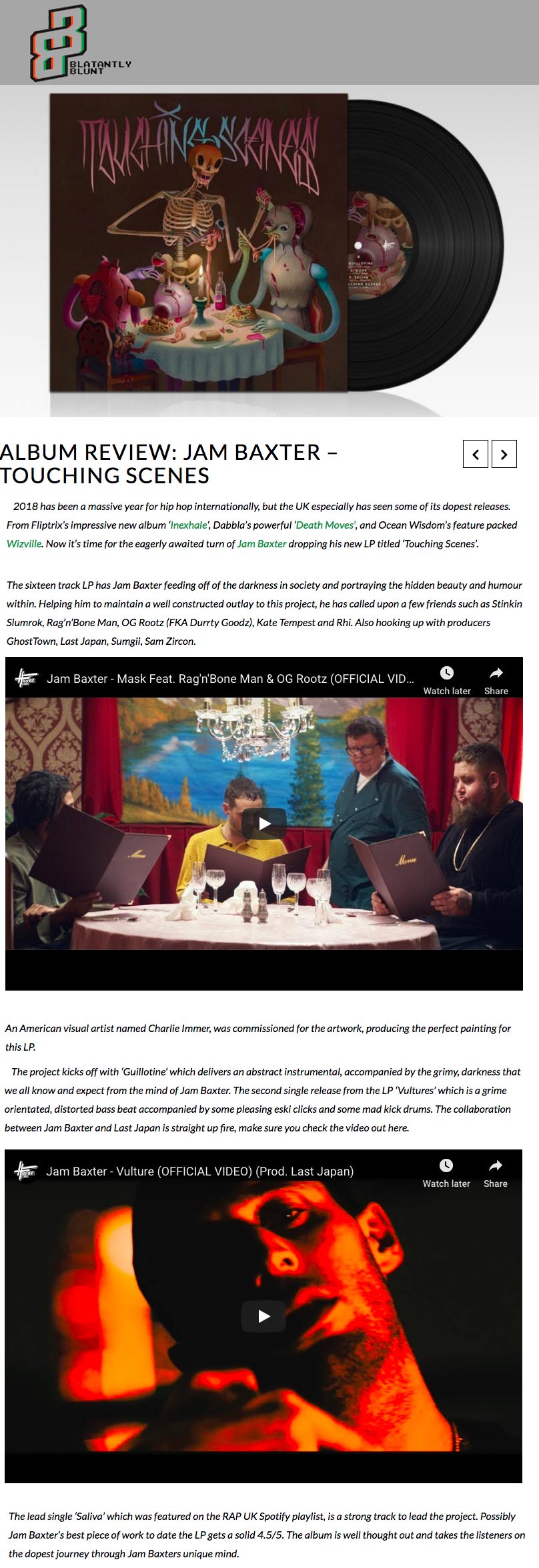 Jam Baxter – ‘Touching Scenes’ – Blatantly Blunt Album Review High Focus2018-11-19T14:14:33+00:00November 19th, 2018|Jam Baxter, Press| https://www.blatantlyblunt.com/review-jam-baxter-touching-scenes/