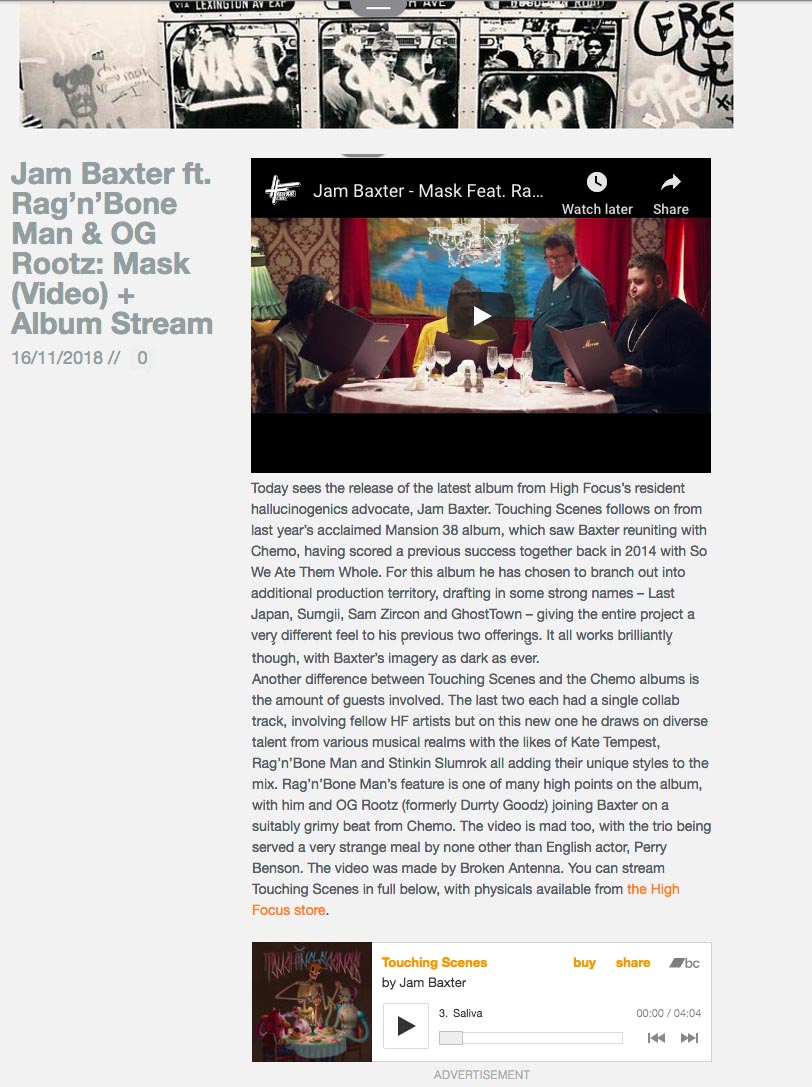 Jam Baxter – ‘Touching Scenes’ – Gingerslim Album Review High Focus2018-11-16T13:52:34+00:00November 16th, 2018|Jam Baxter, Press| https://gingerslim.wordpress.com/2018/11/16/jam-baxter-ft-ragnbone-man-og-rootz-mask-video-album-stream/