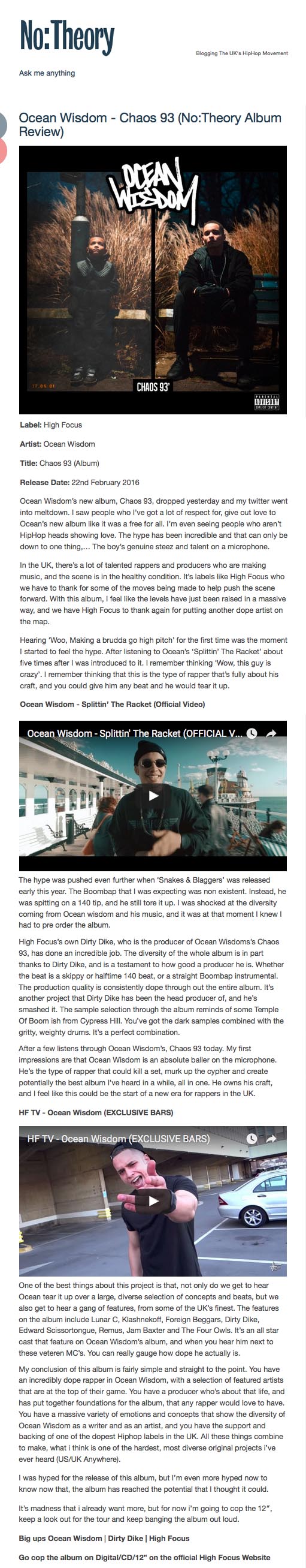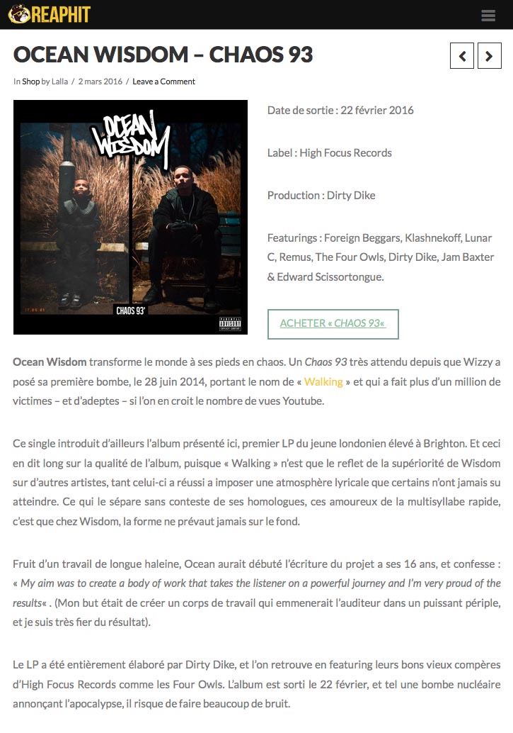 Ocean Wisdom’s debut album ‘Chaos 93’ has charted in 14 different countries! Big up to everyone supporting this release! If you haven’t got yourself a […]