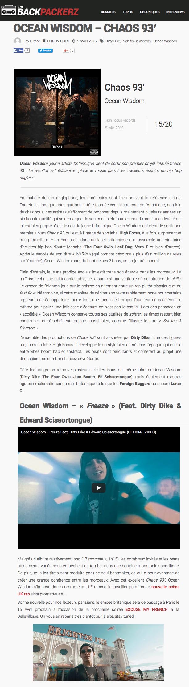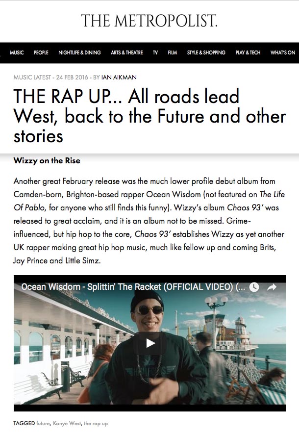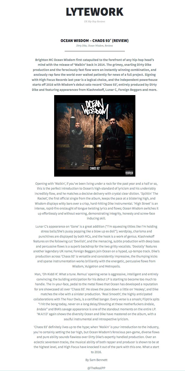 Ocean Wisdom – ‘Chaos 93’ – Debut Album Charts in 14 Countries!