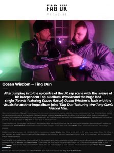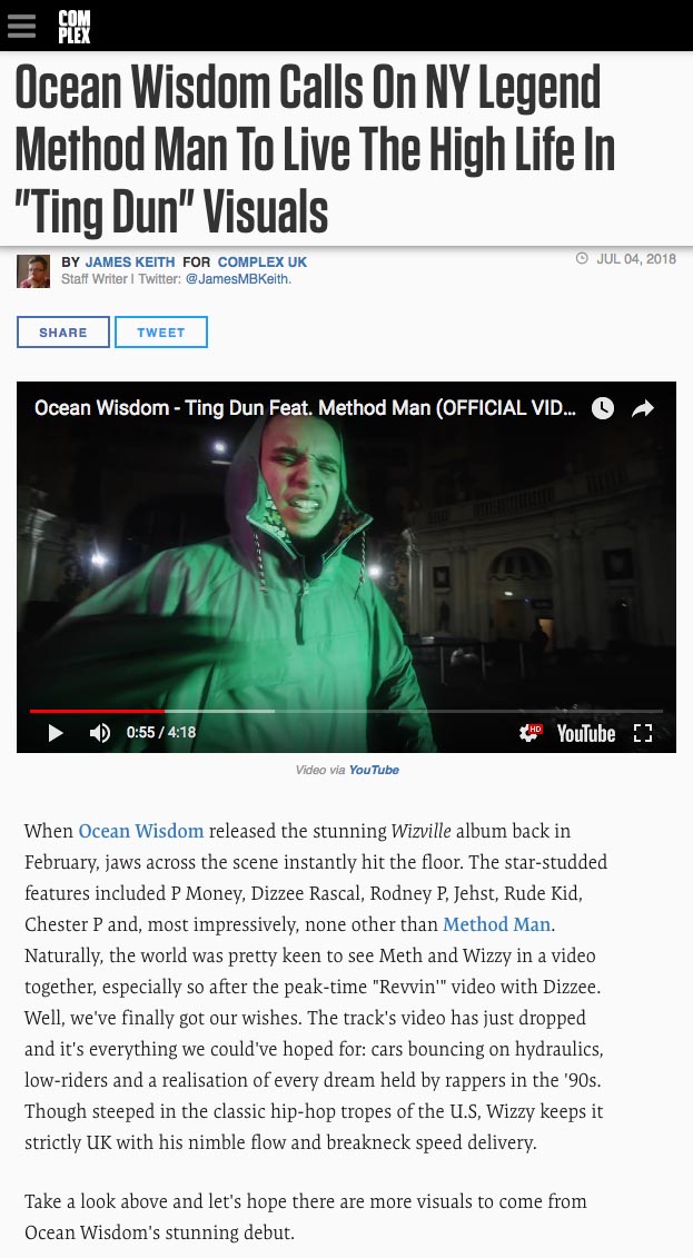Ocean Wisdom – ‘Ting Dun’ Feat. Method Man – Complex Video Feature High Focus2018-07-05T10:13:30+00:00July 5th, 2018|Ocean Wisdom, Press| https://www.complex.com/music/2018/07/ocean-wisdom-ting-dun-feat-method-man