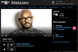 Ocean Wisdom – ‘Ting Dun’ Feat. Method Man – BBC 1Xtra: Mistajam’s Jam Hot High Focus2018-07-04T10:22:16+00:00July 4th, 2018|Ocean Wisdom, Press| Listen Here: https://www.bbc.co.uk/programmes/b0b7x4tr