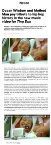 Ocean Wisdom – ‘Ting Dun’ Feat. Method Man – Notion Magazine Video Premier High Focus2018-07-03T11:29:30+00:00July 3rd, 2018|Ocean Wisdom, Press| http://notionmagazine.com/ocean-wisdom-method-man-pay-tribute-hip-hop-history-new-music-video-ting-dun/