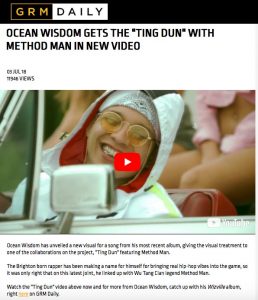 Ocean Wisdom – ‘Ting Dun’ Feat, Method Man – GRM Daily Feature High Focus2018-07-03T14:21:05+00:00July 3rd, 2018|Ocean Wisdom, Press| http://grmdaily.com/video/ocean-wisdom-ting-dun-method-man