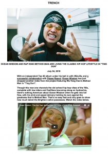 Ocean Wisdom – ‘Ting Dun’ Feat. Method Man – Trench Magazine Feature High Focus2018-07-05T10:15:32+00:00July 5th, 2018|Ocean Wisdom, Press| http://trenchtrenchtrench.com/news/ocean-wisdom-and-rap-king-method-man-are-living-the-classic-hip-hop-lifestyle-in-ting-dun