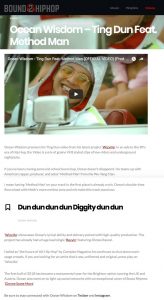 Ocean Wisdom – ‘Ting Dun’ Feat. Method Man – Bound 2 Hip Hop Feature High Focus2018-07-10T11:11:30+00:00July 10th, 2018|Ocean Wisdom, Press| LINK: https://bound2hiphop.com/videos/ocean-wisdom-ting-dun-feat-method-man/?utm_campaign=coschedule&utm_source=twitter&utm_medium=bound2hiphop&utm_content=Ocean%20Wisdom%20-%20Ting%20Dun%20Feat.%20Method%20Man