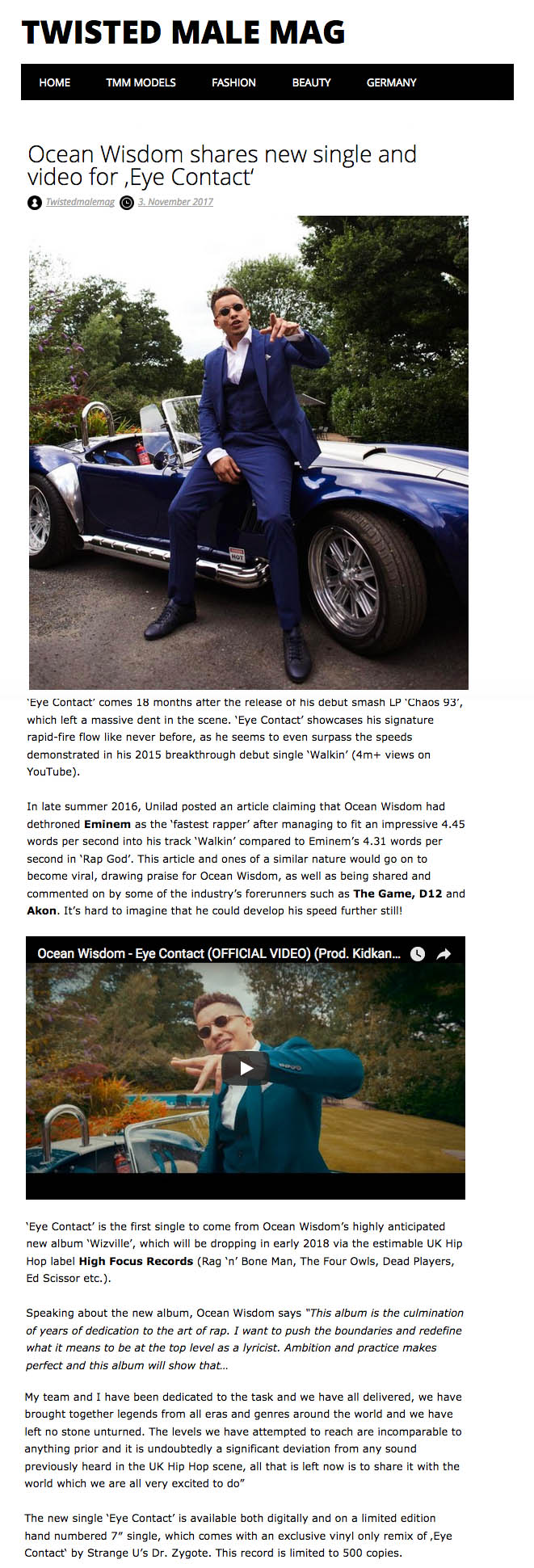 Ocean Wisdom – Eye Contact’ – Heavily Featured On Amazon Music
