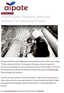 Fliptrix – ‘Problem, Reaction, Solution’ – Aipate feature High Focus2020-10-06T13:39:28+00:00October 6th, 2020|Fliptrix, Press| Fliptrix talks “Problem, Reaction, Solution” in new song [Video]
