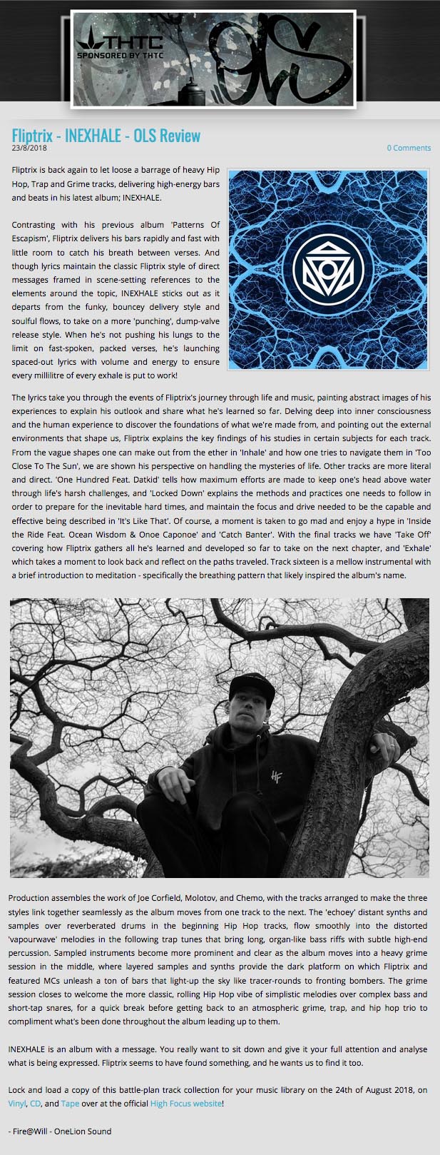 Fliptrix – ‘Inexhale’ – One Lion Sound Review High Focus2018-08-28T12:52:23+00:00August 28th, 2018|Fliptrix, Press| https://www.onelionsound.com/ols-uk-hip-hop-blog/fliptrix-inexhale-ols-review
