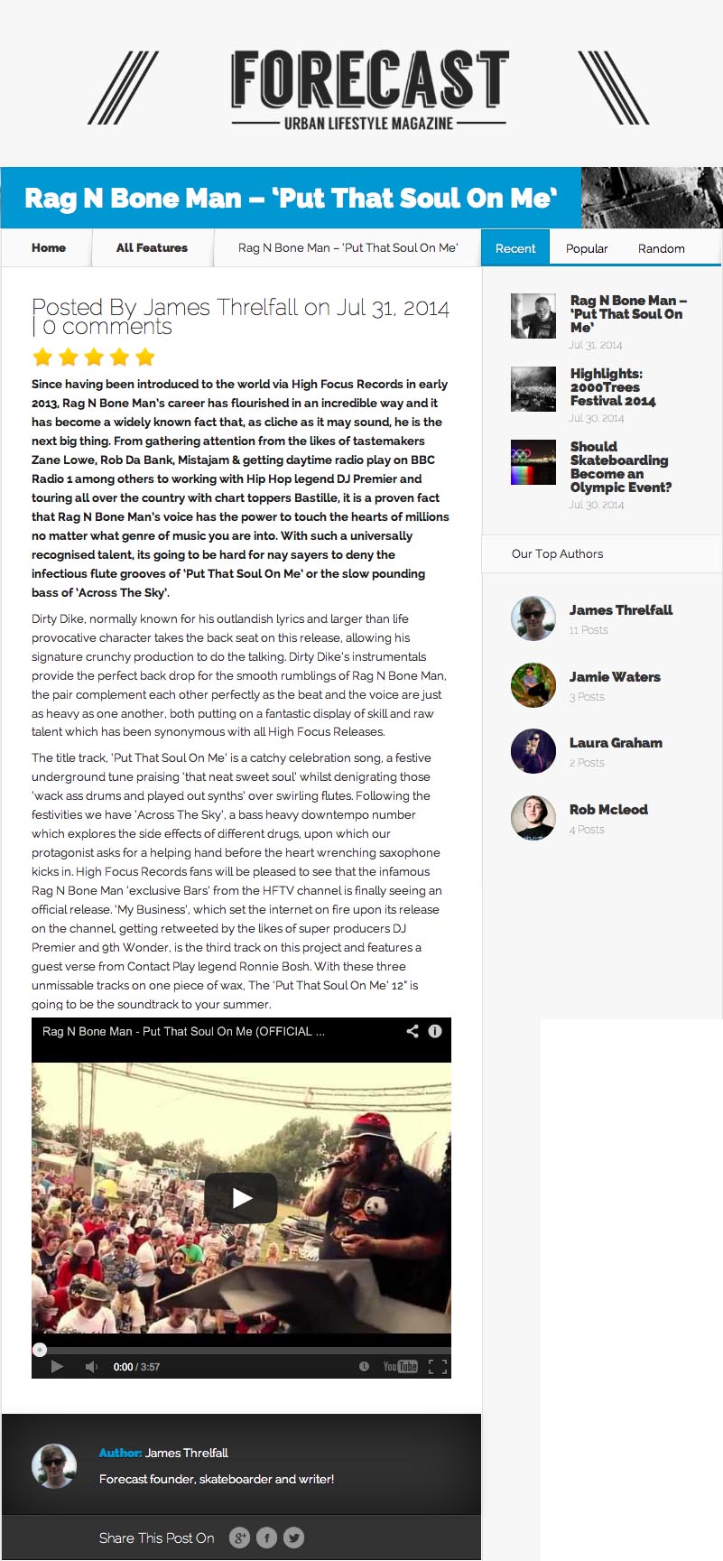 Rag N Bone Man – Put That Soul On Me – Forecast Magazine Review High Focus2014-08-04T15:30:59+00:00August 4th, 2014|Dirty Dike, Press, Rag N Bone Man| http://www.forecastmagazine.co.uk/rag-n-bone-man-put-that-soul-on-me/