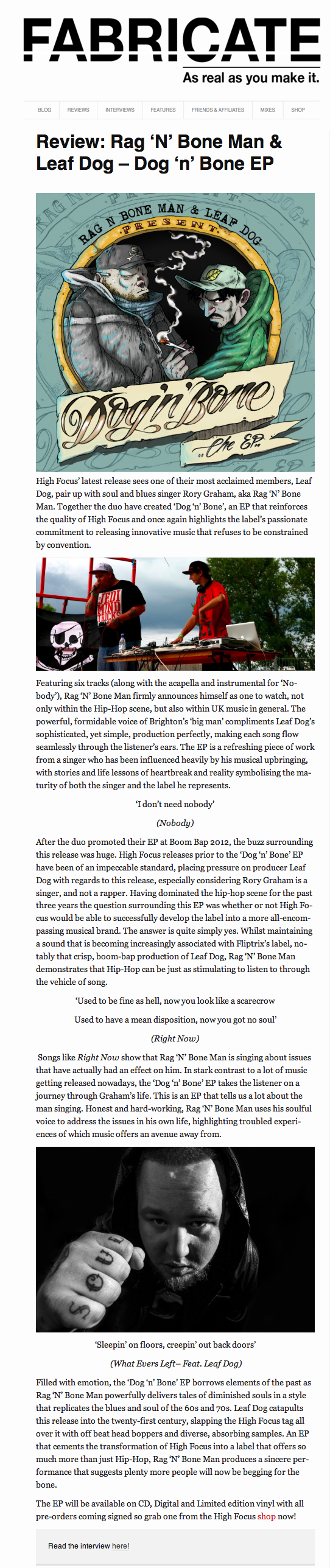 Rag N Bone Man & Leaf Dog – Dog N Bone EP – Fabricate UK Review High Focus2014-01-08T18:43:09+00:00April 29th, 2013|Leaf Dog, Press, Rag N Bone Man| http://www.fabricate-uk.com/review-dog-n-bone-ep/