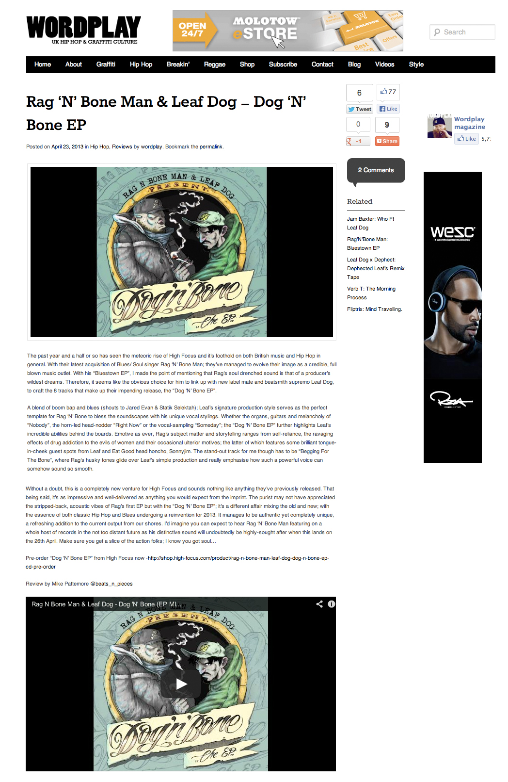 Rag N Bone Man & Leaf Dog – Dog N Bone EP – Wordplay Review High Focus2013-08-02T12:21:18+00:00April 28th, 2013|Leaf Dog, Press, Rag N Bone Man|
