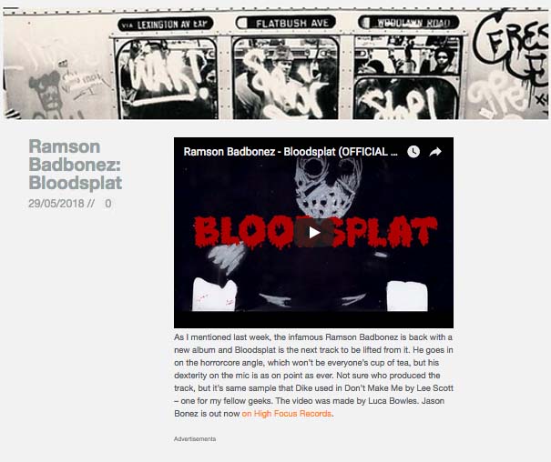 Ramson Badbonez – Bloodsplat – Old To The New Feature High Focus2018-06-26T15:28:48+00:00May 29th, 2018|Press, Ramson Badbonez| https://oldtothenew.wordpress.com/tag/ramson-badbonez/