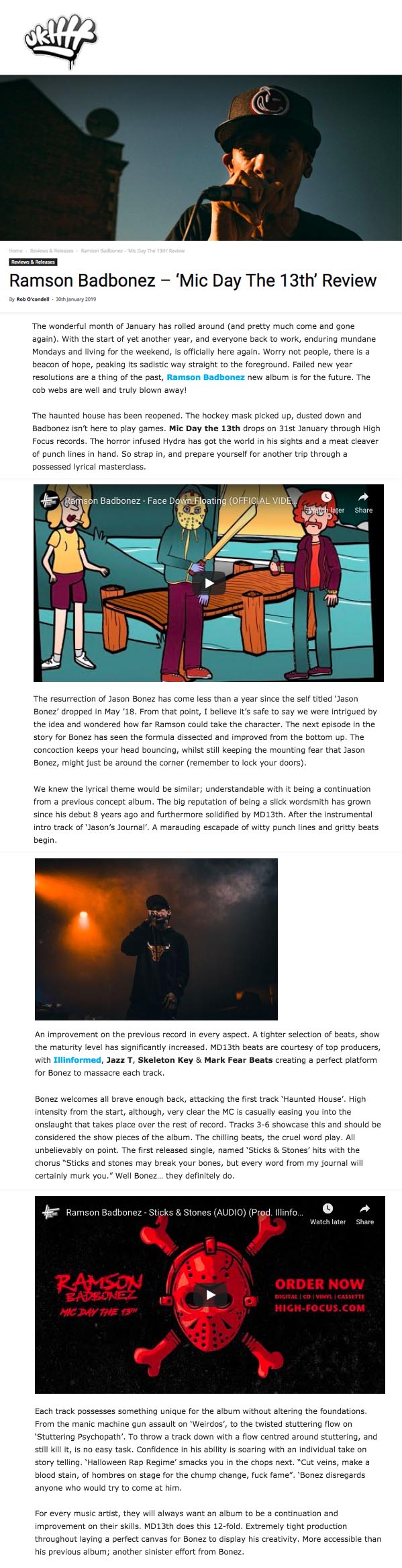 Ramson Badbonez – ‘Mic Day The 13th’ – UKHH Album Review High Focus2019-01-30T11:32:10+00:00January 30th, 2019|Press, Ramson Badbonez|