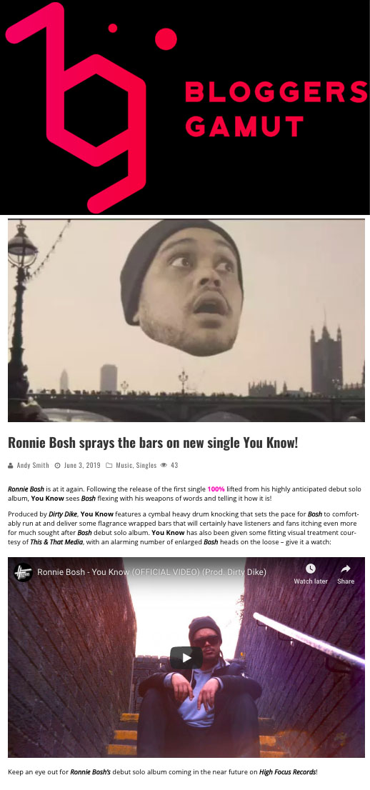 Ronnie Bosh – ‘You Know’ – Blogger’s Gamut Single Review High Focus2019-06-04T12:51:35+00:00June 4th, 2019|Press, Ronnie Bosh| http://bloggersgamut.com/singles/ronnie-bosh-sprays-the-bars-on-new-single-you-know/
