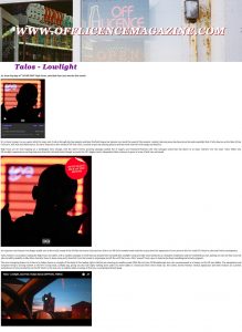 Talos – ‘Lowlight EP’ – Off License Magazine’s Pick Of The Month High Focus2018-07-24T15:44:15+00:00July 24th, 2018|Press, Talos| https://offlicencemagazine.com/2018/07/23/offie-mags-music-of-the-month-july/