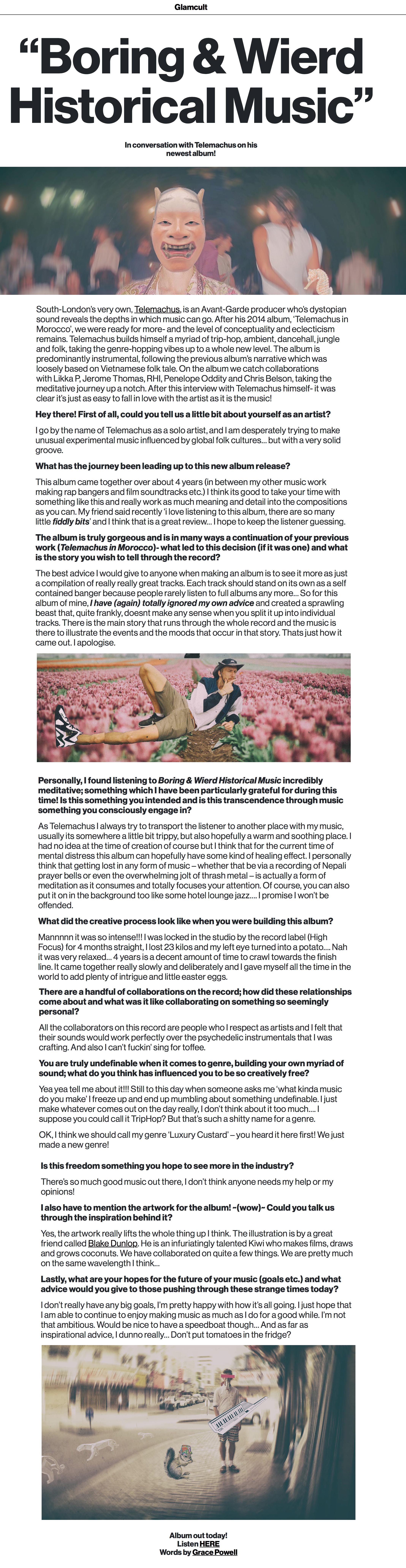 Telemachus – ‘Boring & Weird Historical Music’ – Glamcult Interview High Focus2020-05-26T10:22:13+00:00May 26th, 2020|Press, Telemachus|
