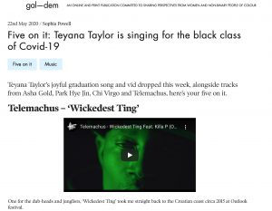 Telemachus – ‘Wickedest Ting’ – GalDem Feature High Focus2020-05-29T15:45:06+00:00May 29th, 2020|Press, Telemachus|