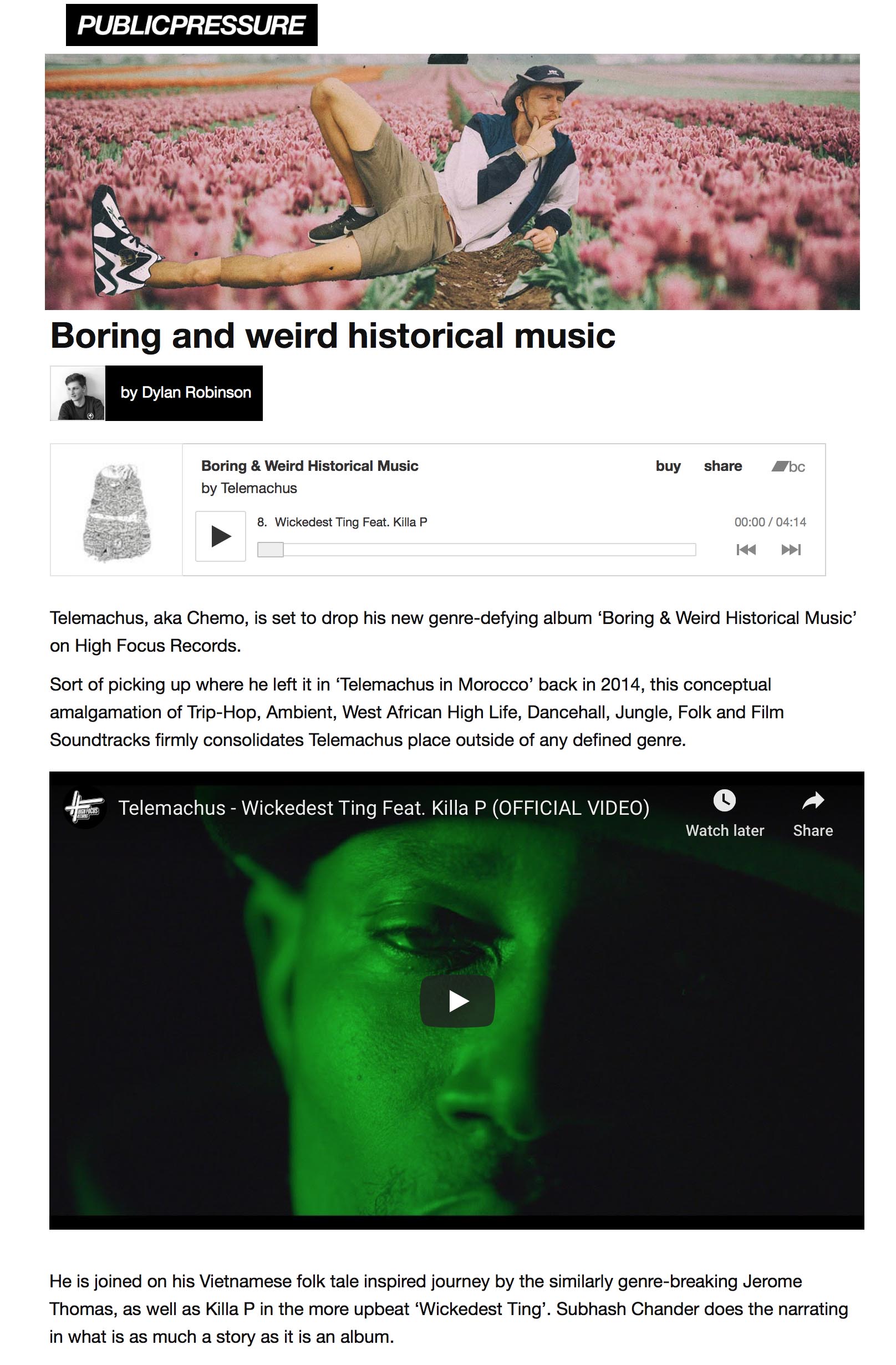Telemachus – ‘Boring & Weird Historical Music’ – Public Pressure Feature High Focus2020-05-26T10:18:37+00:00May 26th, 2020|Press, Telemachus|