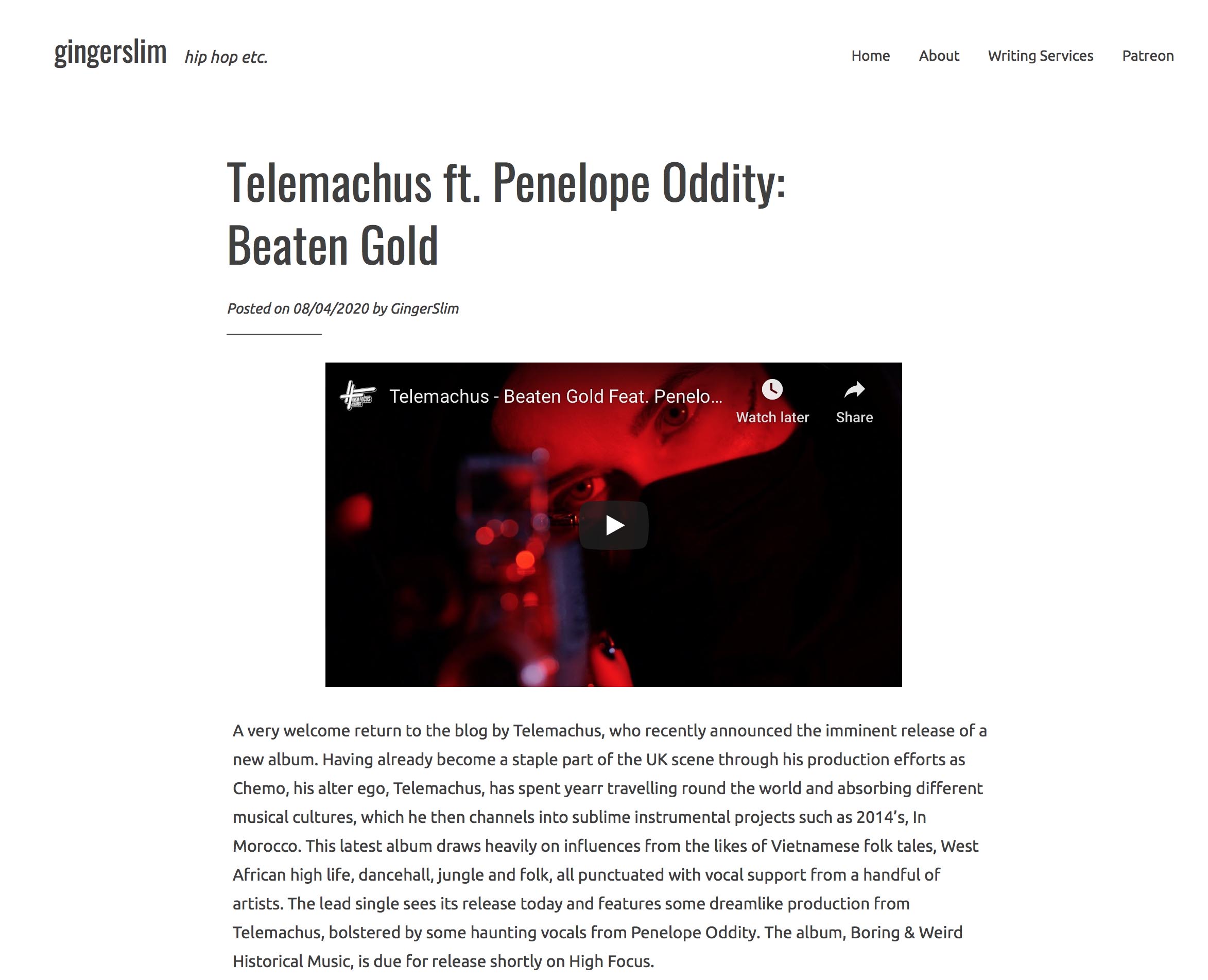 Telemachus – ‘Beaten Gold’ – Gingerslim Feature High Focus2020-04-29T11:54:28+00:00April 29th, 2020|Press, Telemachus|