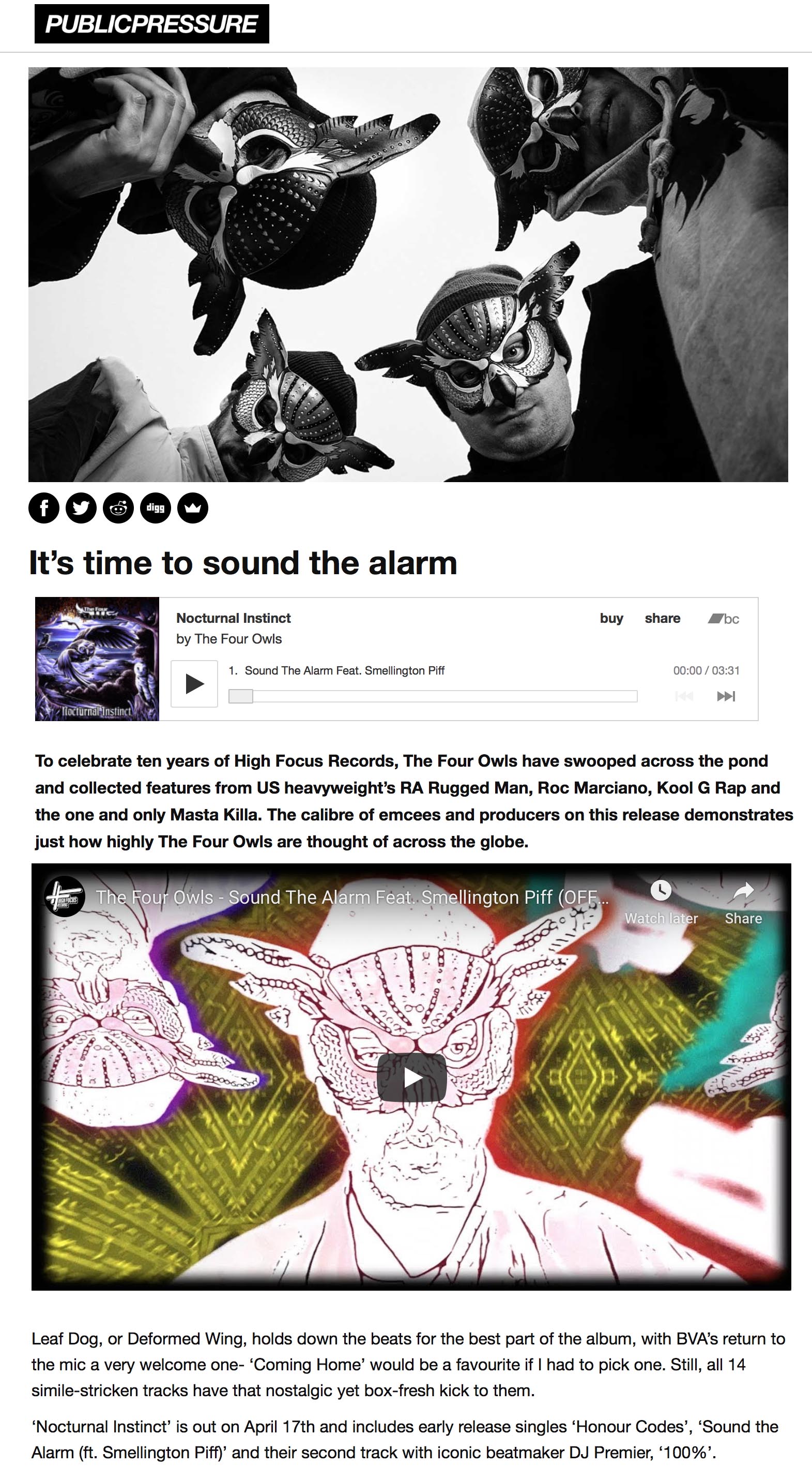 The Four Owls – ‘Nocturnal Instinct’ – Public Pressure Feature High Focus2020-04-23T14:30:36+00:00April 23rd, 2020|Press, The Four Owls|