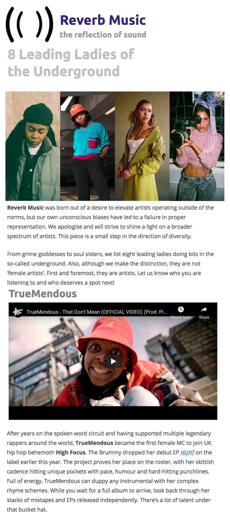 TrueMendous – Leading Ladies Of The Underground – Reverb Music High Focus2020-07-13T09:48:53+00:00July 13th, 2020|Press, TrueMendous|