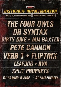 Fliptrix, Verb T, Leaf Dog, BVA, The Four Owls, Dirty Dike, Jam Baxter & DJ Sammy B-Side live @ Lakota, Bristol NYE! Fliptrix, Verb T, Leaf Dog, BVA, The Four Owls, Dirty Dike, Jam Baxter & DJ Sammy B-Side live @ Lakota, Bristol NYE! High Focus2013-01-17T11:48:11+00:00December 31st, 2012|Previous Shows, Shows|