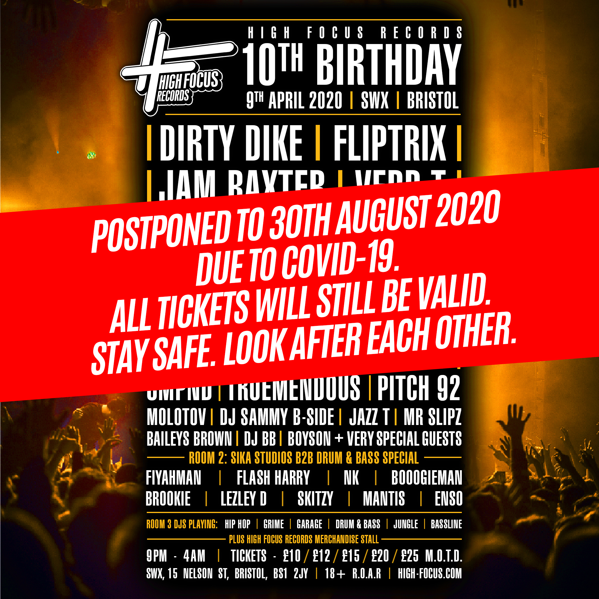 Celebrating 10 years of producing the UK’s finest Hip Hop, long-running imprint High Focus Records takes over the huge SWX space in Bristol on 9th April 2020 to mark a decade in the game.