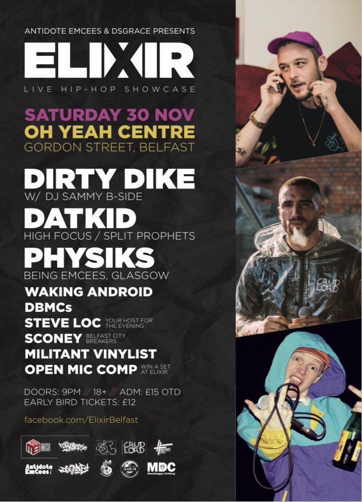 Tickets: https://www.eventbrite.co.uk/e/elixir-12-dirty-dike-datkid-physiks-oh-yeah-centre-tickets-74084273055?aff=ebdssbeac
