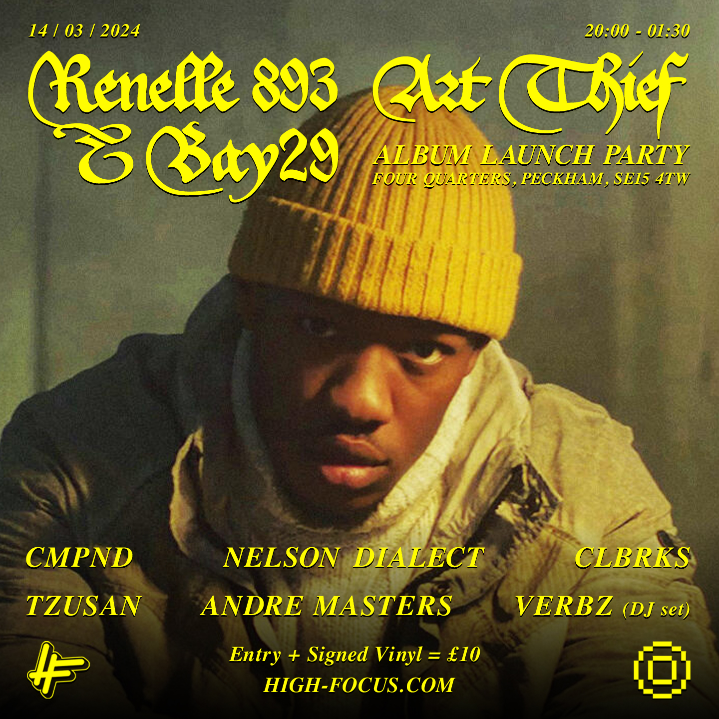 Four Quarters bar 187 Rye Ln, Peckham, London, United KingdomJoin Renelle 893 (and friends) to celebrate the launch of Renelle's DEBUT ALBUM 'Art Thief'. - TICKETS. DATE: 14.03.24 LOCATION: Four Quarters Arcade Bar, 187 [...]